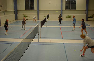 Badmintoncourts von denen fünf auch im Doppel bespielbar sind.